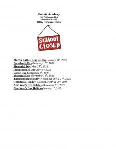 Bonnie Academy 2026 Closure Dates